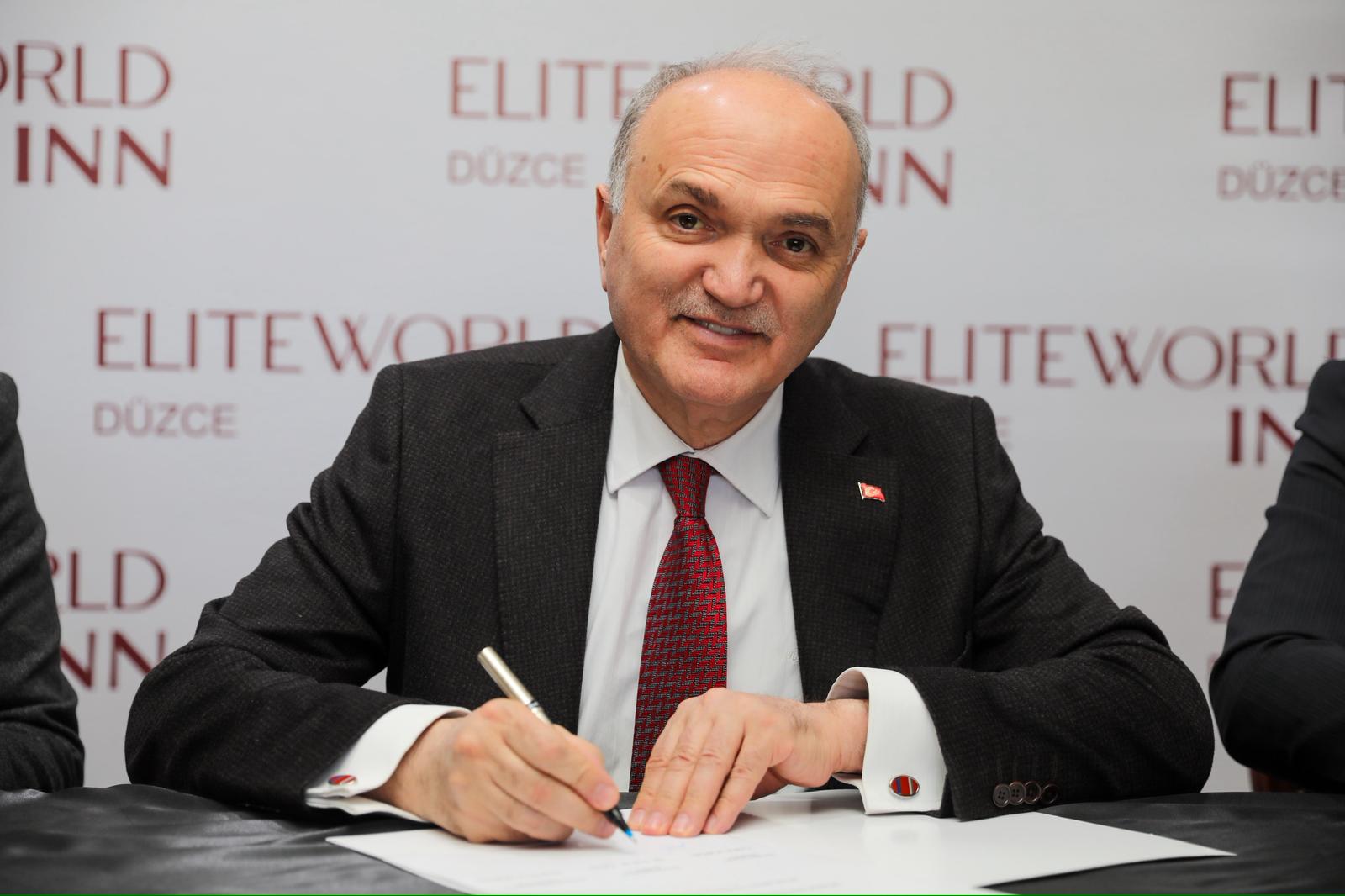 Elite World Inn Düzce Otel’in sözleşmesi, Düzce Belediye Başkanı Dr. Faruk Özlü, Cahit Vuruş Şirketler Grubu Yönetim Kurulu Başkanı Cahit Vuruş ve Elite World Başkan Yardımcısı Mahmut Sürme tarafından imzalandı.