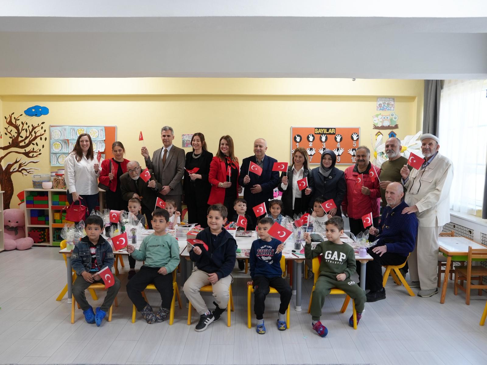 Sosyal Hizmetler Müdürlüğü tarafından organize edilen programda yaşlılar, ana sınıfı öğrencileriyle buluştu. Çocuklara, özenle hazırladıkları hediyeler ile birlikte çiçek ve Türk bayrağı veren yaşlılar, 23 Nisan Bayramı’nı kutladılar.