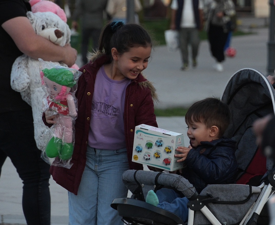 Oyuncakları geri getiren çocuklar, beklemedikleri bir sürprizle karşılaştı. Personel, kendisine yardım eden her çocuğa bir oyuncak hediye ederken, deneyin sonunda Düzce Belediye Başkanı Dr. Faruk Özlü’nün selamıyla Türk bayrakları, toplar, boyama kitapları ve çeşitli oyuncaklar çocuklara armağan edildi.