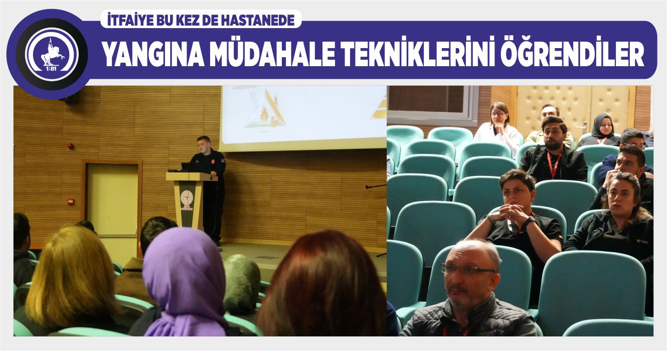 Düzce Belediyesi İtfaiye Müdürlüğü, acil durum ve yangına müdahale eğitimlerini bu kez hastane personeli için organize etti. Atatürk Devlet Hastanesi’nde düzenlenen eğitim seminerine 50 hastane personeli katıldı.