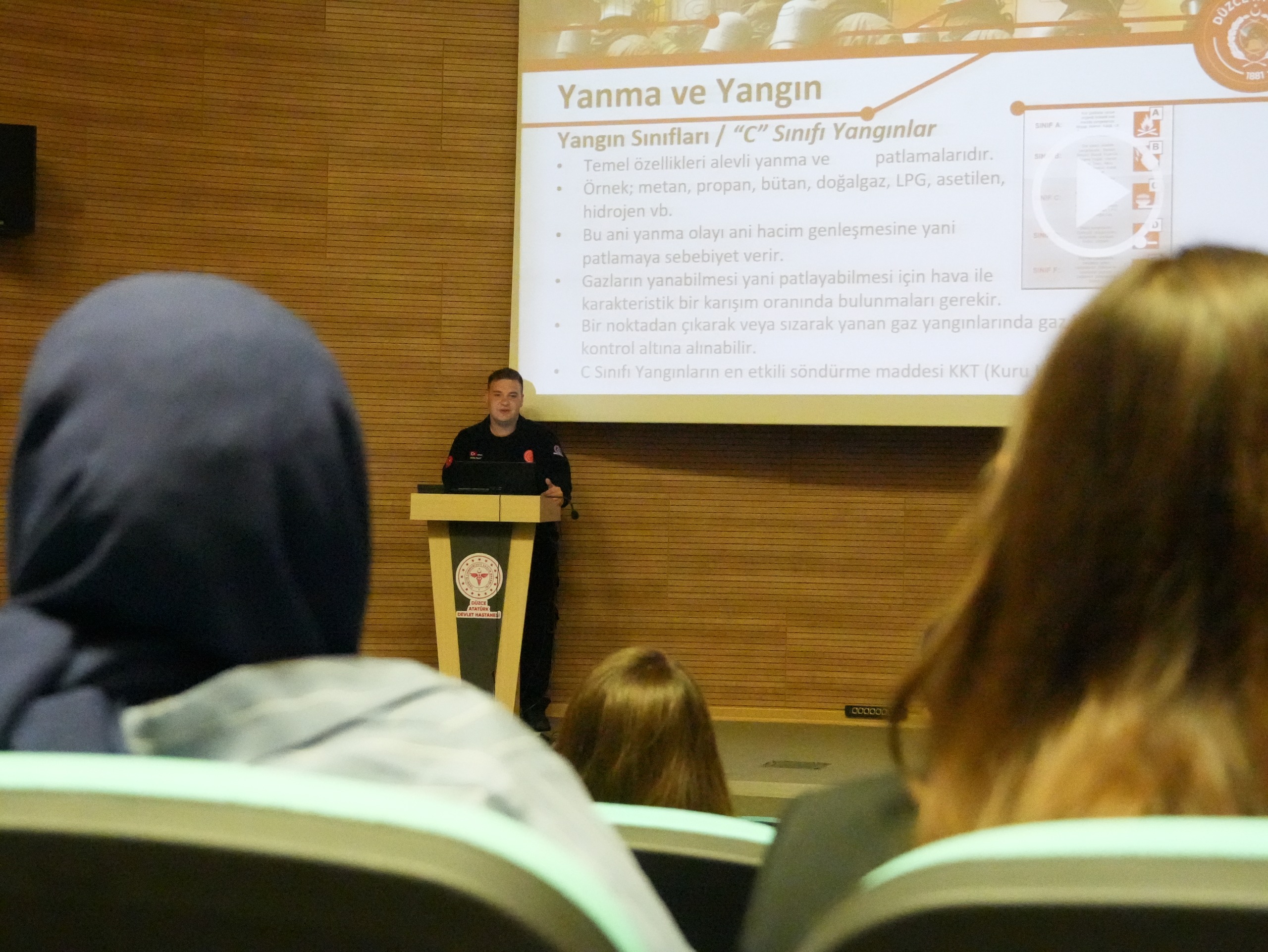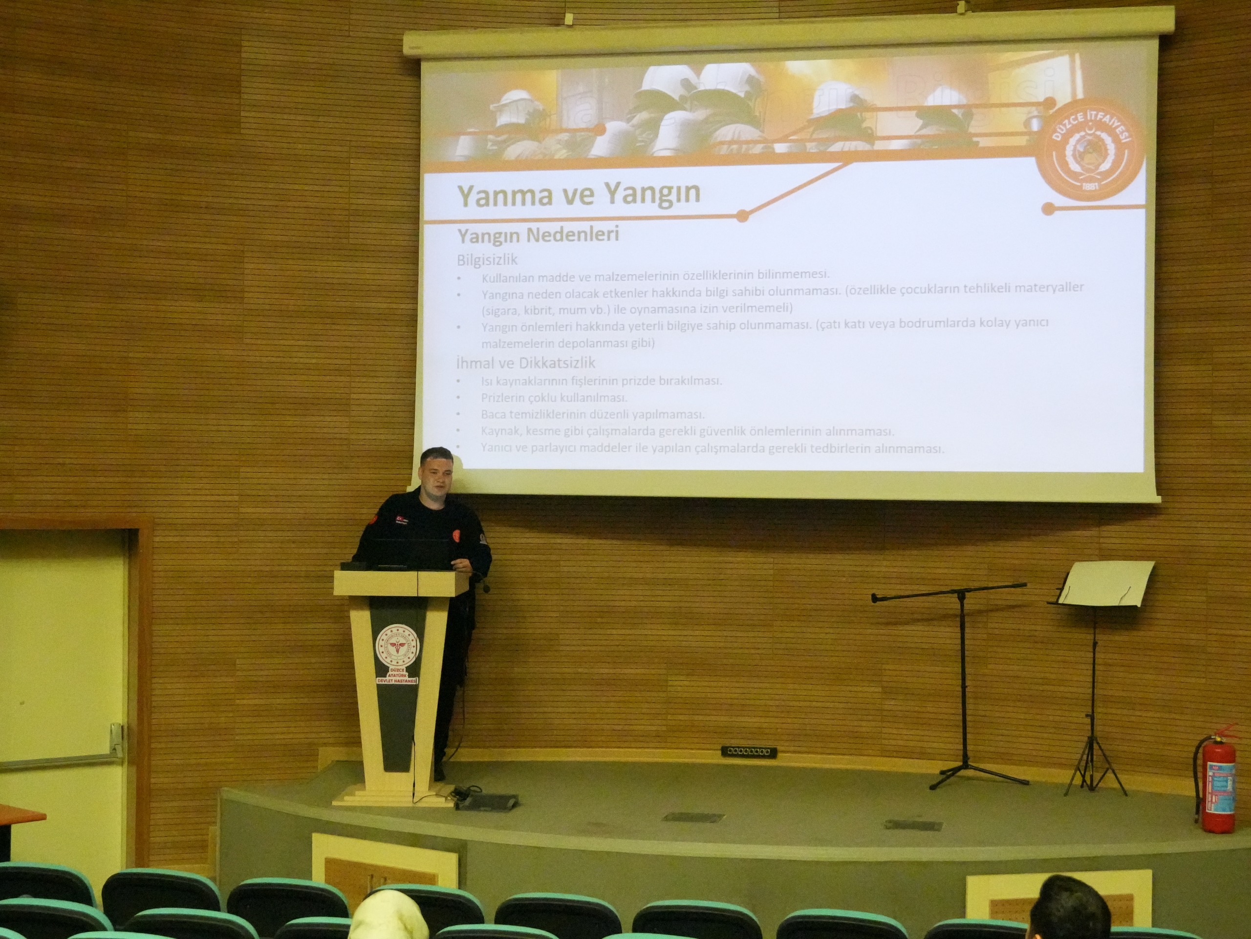 Düzce Belediyesi İtfaiye Müdürlüğü, özellikle yangın başta olmak üzere afet ve acil durumlara zamanında müdahalesi ile adından sıkça söz ettirirken eğitim çalışmalarına da hız kesmeden devam ediyor. Her yaştan Düzceli’nin acil durum ve yangınlara karşı alması gereken tedbir ve müdahale türlerini öğrenmesi gerektiği inancıyla başlatılan eğitim seferberliği bu kez Atatürk Devlet Hastanesi personeli için düzenlendi.