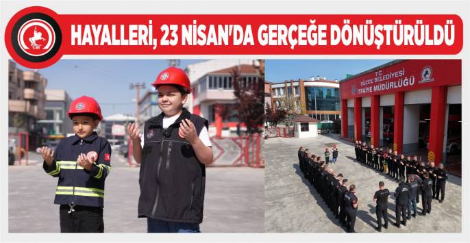 Düzce Belediyesi, 23 Nisan Ulusal Egemenlik ve Çocuk Bayramı etkinlikleri kapsamında Yunus Emre ve Ahmet Arif Demirci isimli kardeşlerin itfaiyeci olma hayallerini gerçeğe dönüştürdü.  İtfaiye Müdürlüğü’nde misafir edilen kardeşler, sabah duasında itfaiyecilerle bir araya geldi.