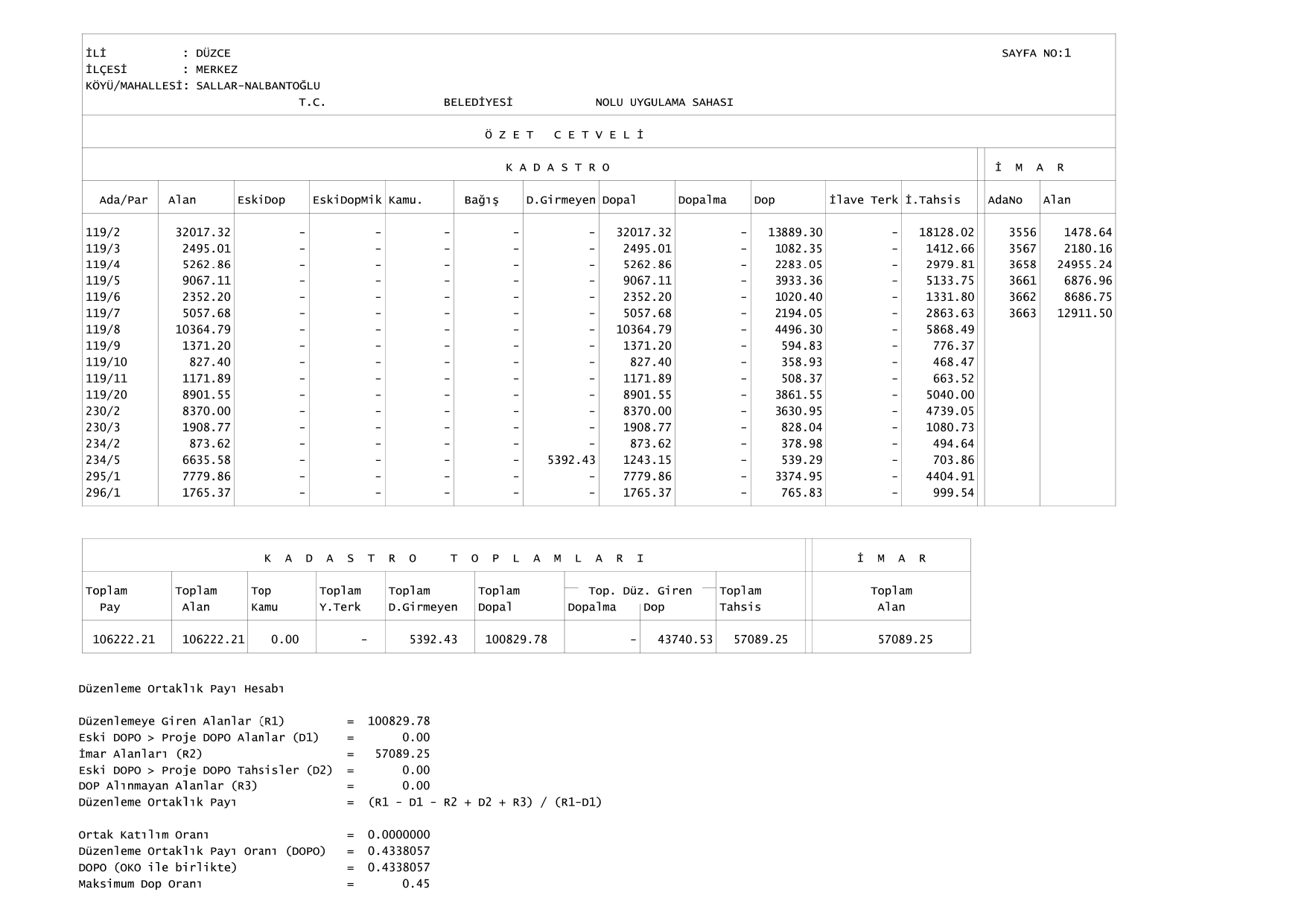 Düzce İli, Merkez İlçesi, Sallar Mahallesi 2, 3, 4, 5, 6, 7, 8, 9, 10, 11 ve 20 nolu parseller ile Nalbatoğlu Mahallesi 230 ada 2, 3, 234 ada 2, 5, 295 ada 1 ve 296 ada 1 nolu  parsellerin, bulunduğu alanda 3194 sayılı İmar Kanununun 18. Maddesi ile 2981/3290 sayılı İmar Affı Kanununun Ek-1 maddesine dayanılarak 23/05/2025  tarih ve 428 sayılı encümen kararı gereğince Re’sen düzenlemeye tabi tutulmuştur